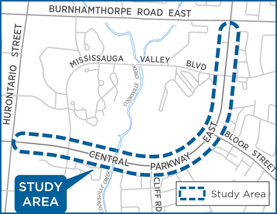 The City has started a planning and preliminary design study for road improvements and renewals to the Central Parkway East study area.