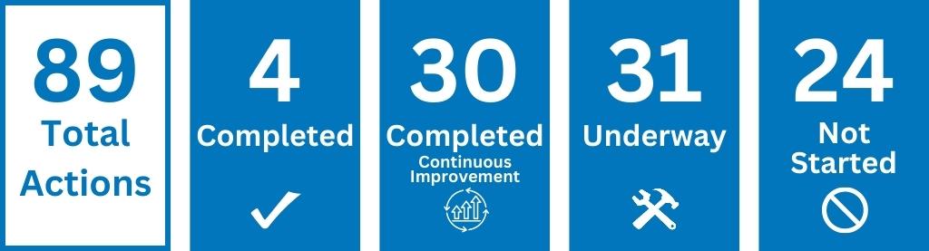 - 54 actions have been completed, including 41 continuous improvement actions