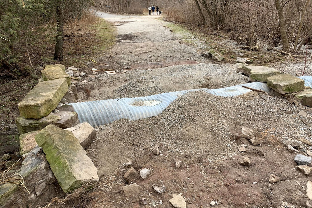 Due to its location next to the Credit River (with sections in the floodplain), Culham Trail has experienced significant damage caused by increasingly frequent environmental events. The City has invested in repairs to trail surfaces, but regular washouts have resulted in repeated damage.