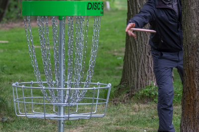 Disc golf is a sport whose popularity has grown over the last few years. With rules similar to traditional golf, players throw a disc from a tee-off area into a metal basket mounted in the ground. The object of the game is to complete each hole in the fewest number of throws.