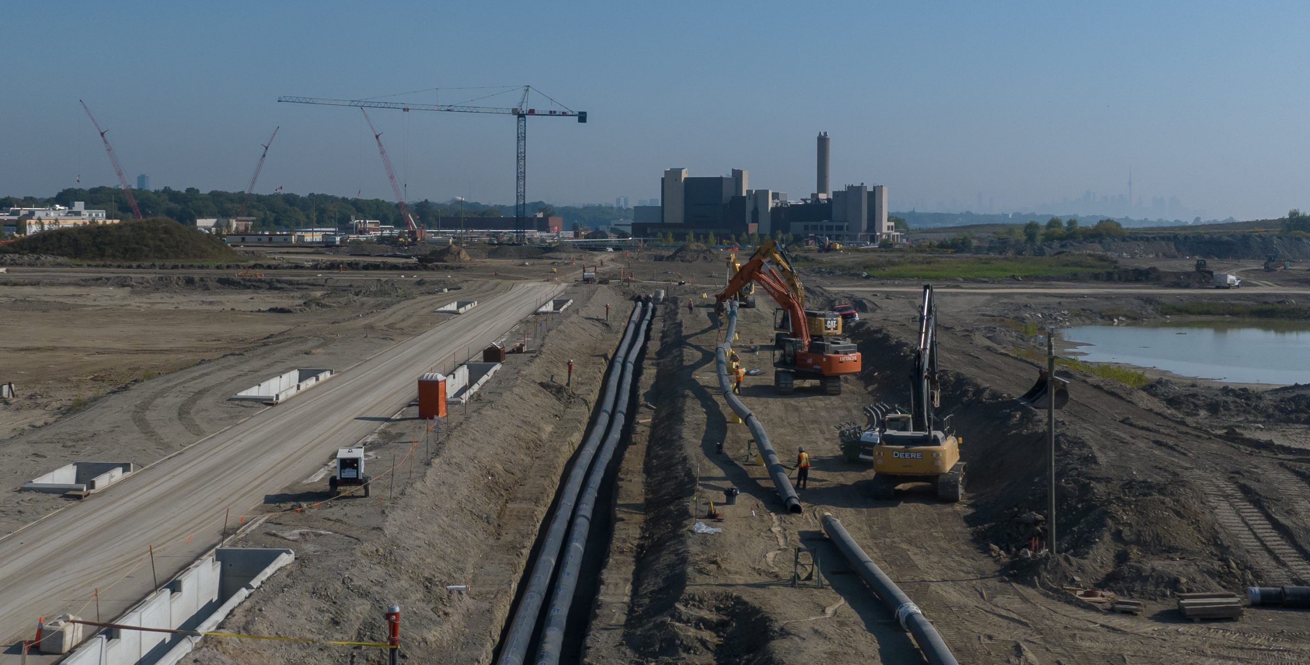 - Crews are starting foundation and construction work on the district energy operations centre and installing piping network and service connections to all development blocks.