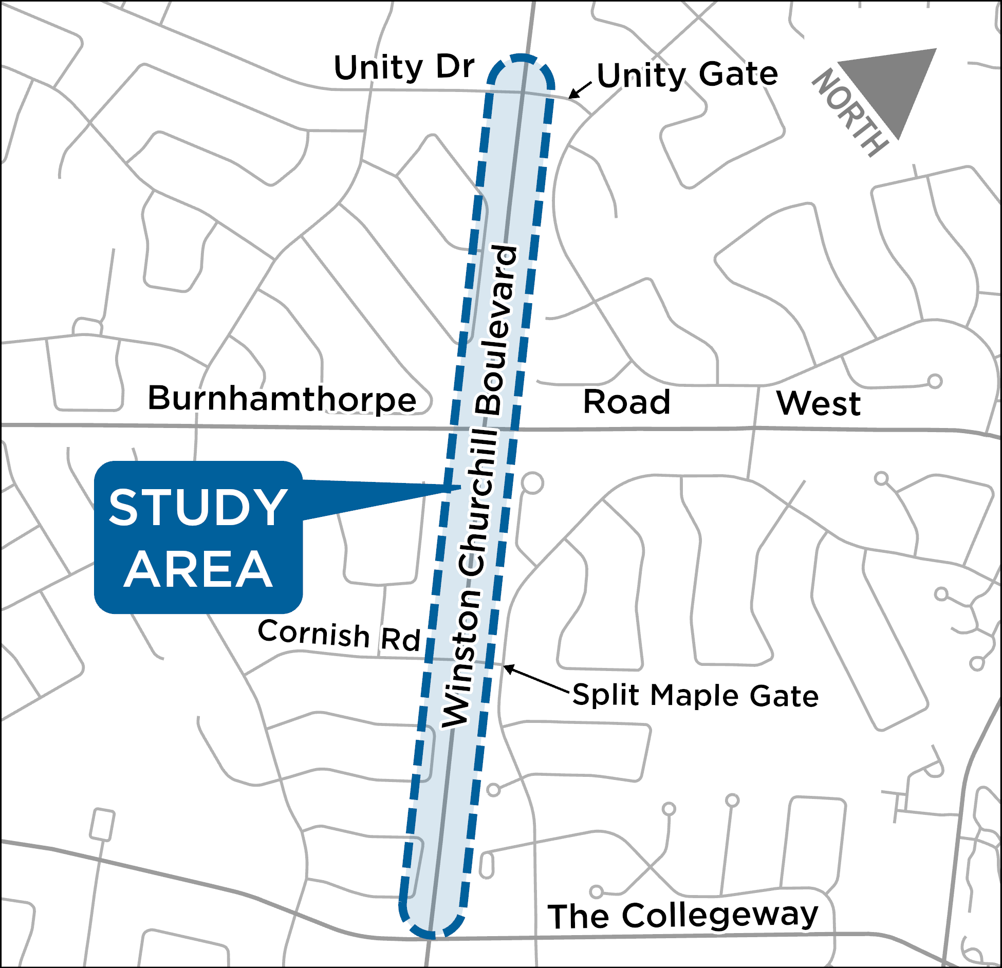 The City has started a planning and preliminary design study for road improvements and renewals to the Winston Churchill Boulevard study area.
