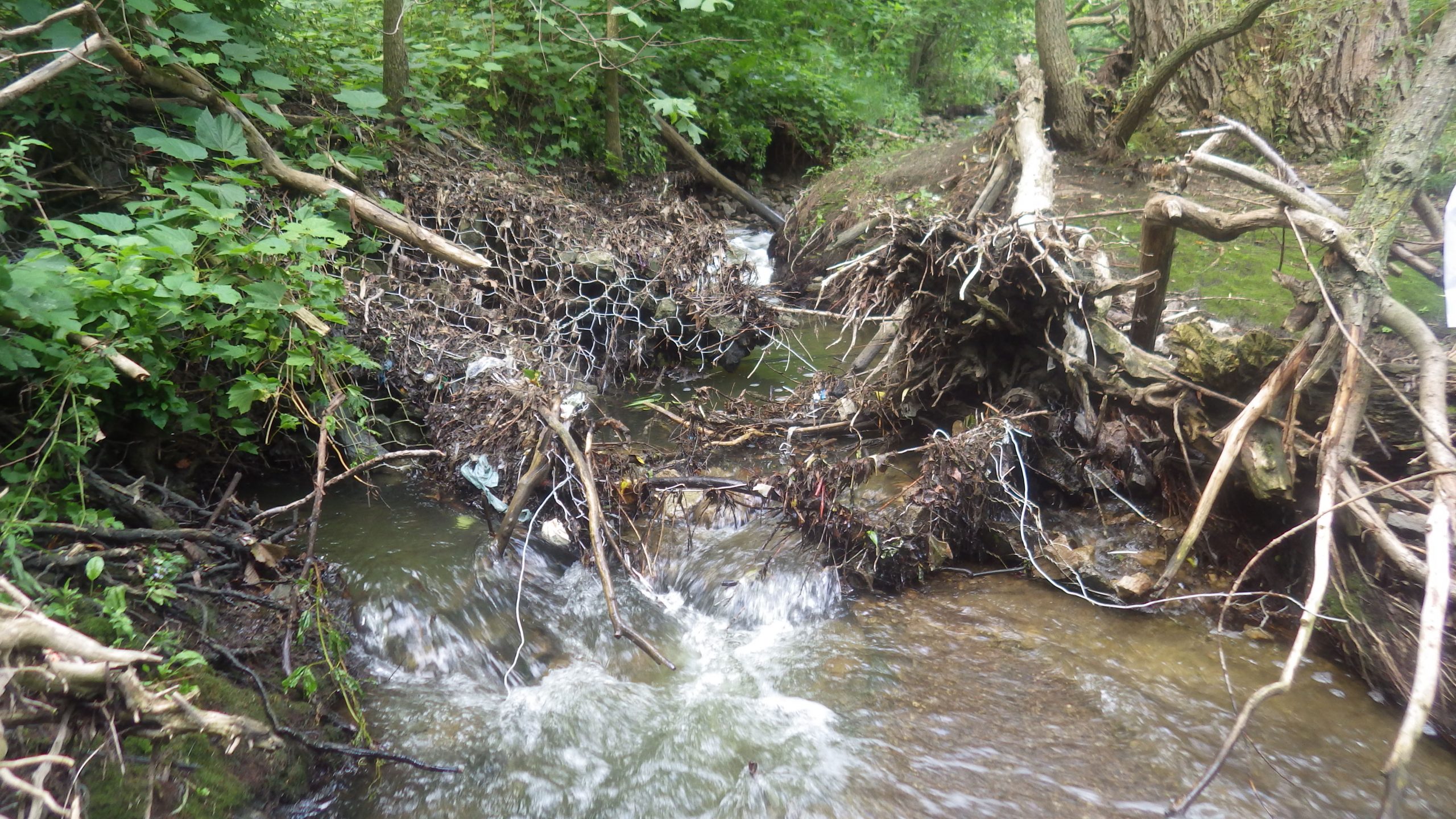 Currently, the creek is channelized with many banks and grade control structures composed of stone-filled gabion baskets that were installed 40 to 50 years ago over the 1.1 km length through the park.