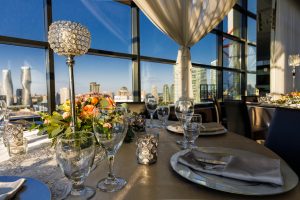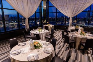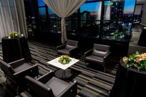 Towering 12 stories above downtown Mississauga, this contemporary venue features floor-to-ceiling windows showcasing panoramic views of the city.
