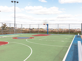 The outdoor basketball court is located in the south parking lot of Iceland Arena. The court is open for public use every day from 7 a.m. to 11 p.m.