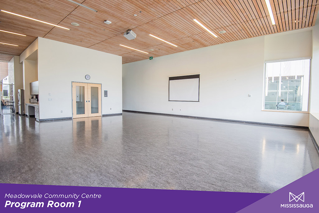 Meadowvale Community Centre features a double sized gymnasium that offers a variety of activities including basketball, volleyball, badminton, indoor soccer and more.