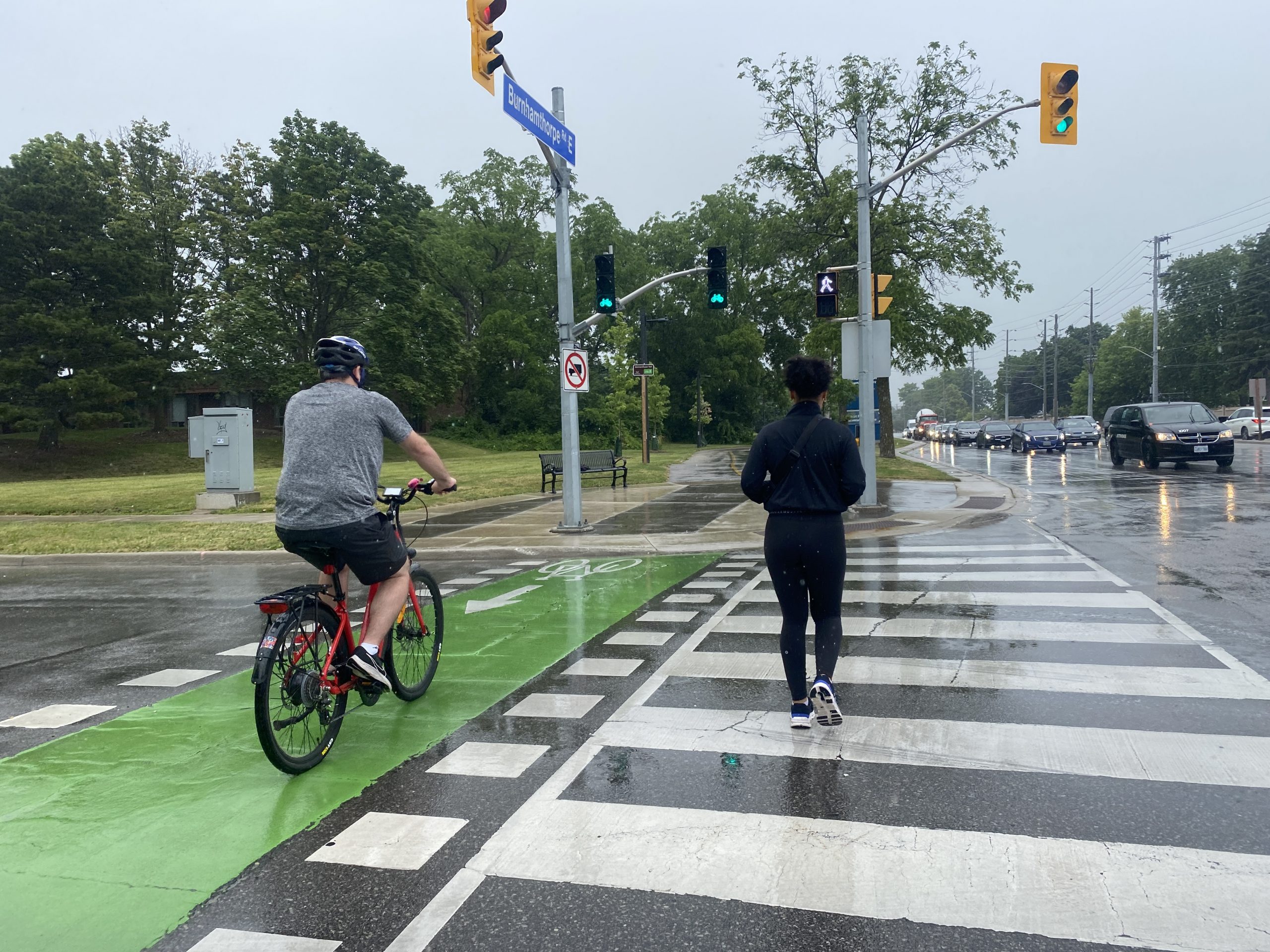 Cyclists and e-scooter users should dismount their vehicles at pedestrian crosswalks. Learn more about cycling rules, regulations and safety tips.